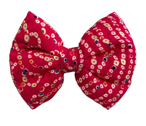 Bow Tie for Dogs: Bandhani Festive Bow for Pets (Red)