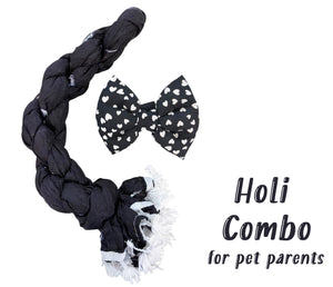Holi Outfit for Dog and Mom: Matching Dog Bow Tie and Bandhani Dupatta (Black)
