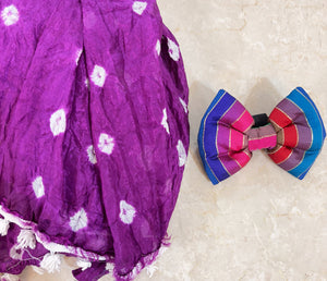 Holi Outfit for Dog and Mom: Matching Dog Bow Tie and Bandhani Dupatta (Purple)