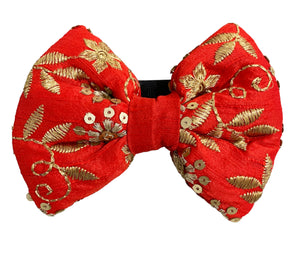 Traditional Red Dog Bow Tie with Gold Embroidery for Diwali and Weddings