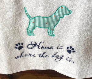 Embroidered Hand Towels: Home Is Where The Dog Is