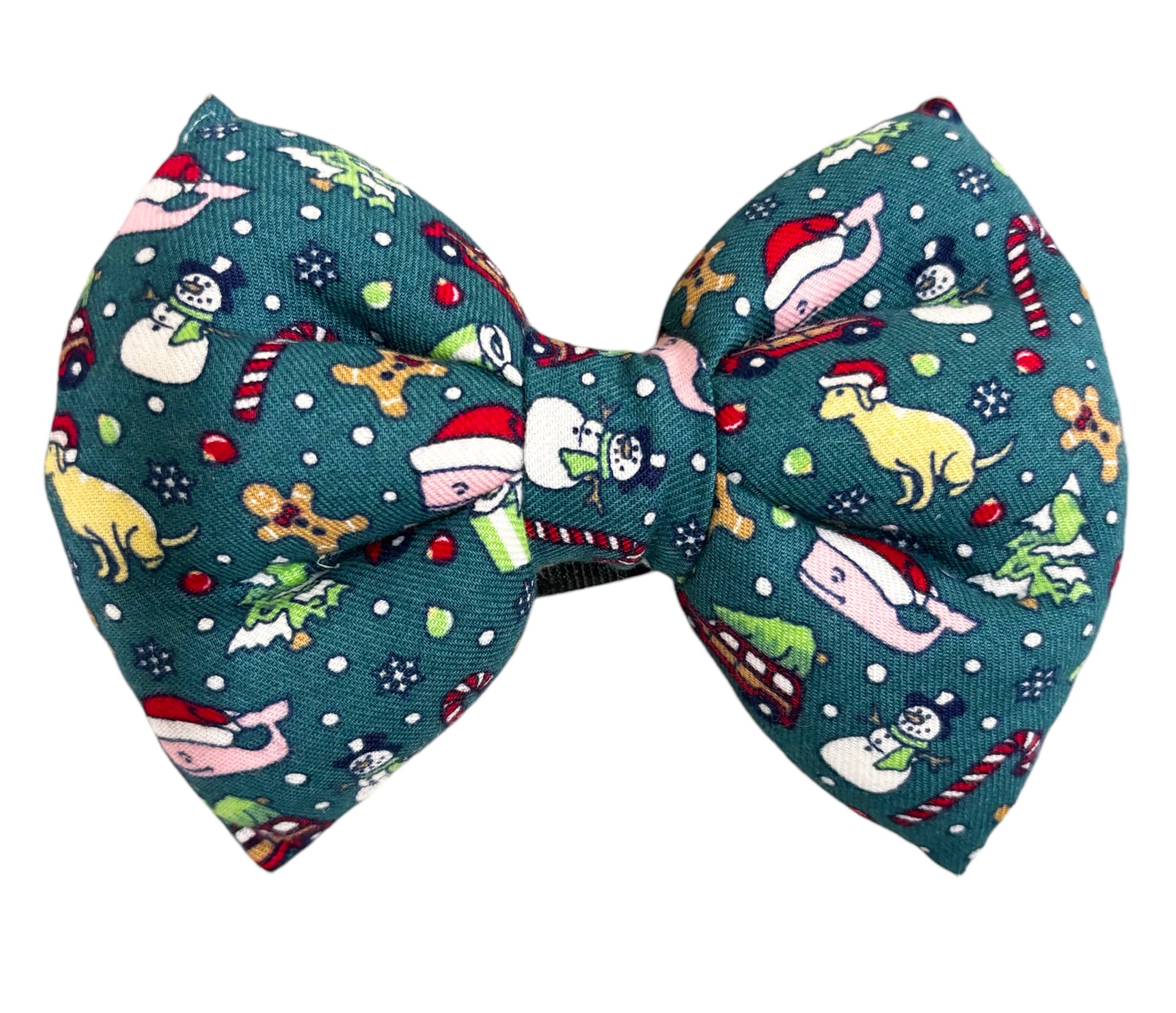 This ‘lit’ bow tie is the cutest accessory for your pet for any kind of celebration. The green background with the colourful festive lights are sure to make your pooch or kitty Christmas ready. Handcrafted with utmost love, this is a beautiful accessory with a unique print for your dog or cat.